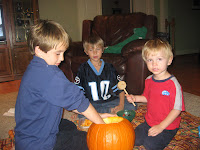 Nolan and Garrett didn't care for digging out the pumpkin seeds. It didn't bother Liam or Preston. They got really creative this year.